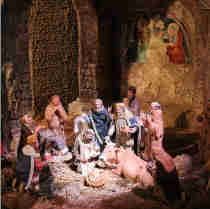 – По молба на Франциск Джовани е осигурил ясли в една от пещерите. Около нея имало вол и магаре, с мъж и жена в костюми, които представляваха Йосиф и Мария, и восъчна кукла за Христос.